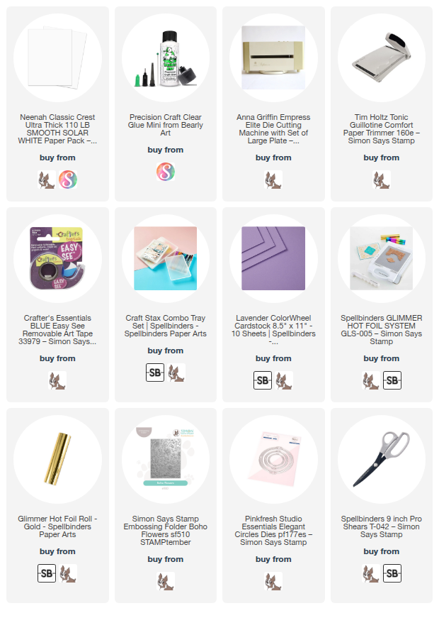Next, I matted that to a cardbase 4.25" x 5.5". I used the middle-size circle from the Pink Fresh Studios Elegant Circles die set and cut it (and kept the center) from the white cardstock. I used the Spellbinders Betterpress You Are Everything Letterpress inking plate and matching die along with their gold foil to create the sentiment on my Spellbinders Glimmer machine. The flowers are from Pinkfresh Studios Breezy Blossoms where I used their matching stamps, stencils and dies. The ink is Lavender Glaze from Taylored Expressions.